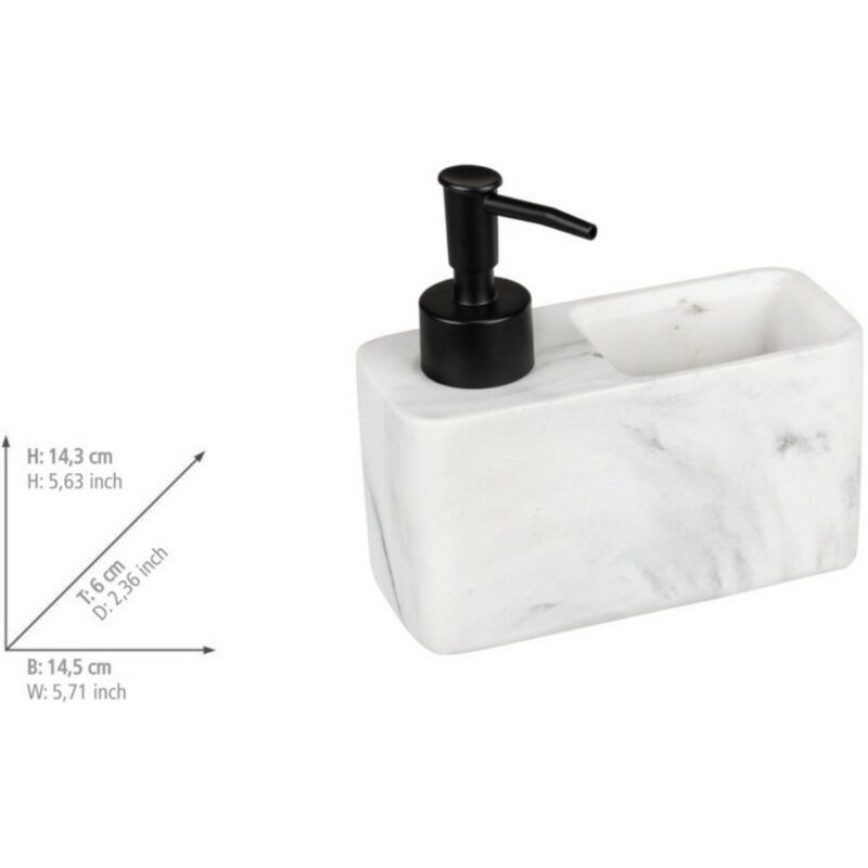 Vynikajúci a praktický dávkovač saponátu s miestom na odkladanie hubky alebo drôtenky. Dávkovač zaujme svojim elegantným vzhľadom. Štýlový doplnok, ktorý sa hodí do každej kuchyne a je možné ho kombinovať s mnohými ďalšími farbami a doplnkami.Vhodný tiež na tekuté mydlo, úložné miesto možno využiť aj na iné náčinie do kúpeľa alebo líčidlá. Vyrobený z polyresinu – odolný, trvanlivý, takmer nerozbitný materiál, ktorý v mnohom predbehne keramiku, plast aj drevo. Kvalitný výrobok nemeckej firmy Wenko. Drôtenka je súčasťou balenia.