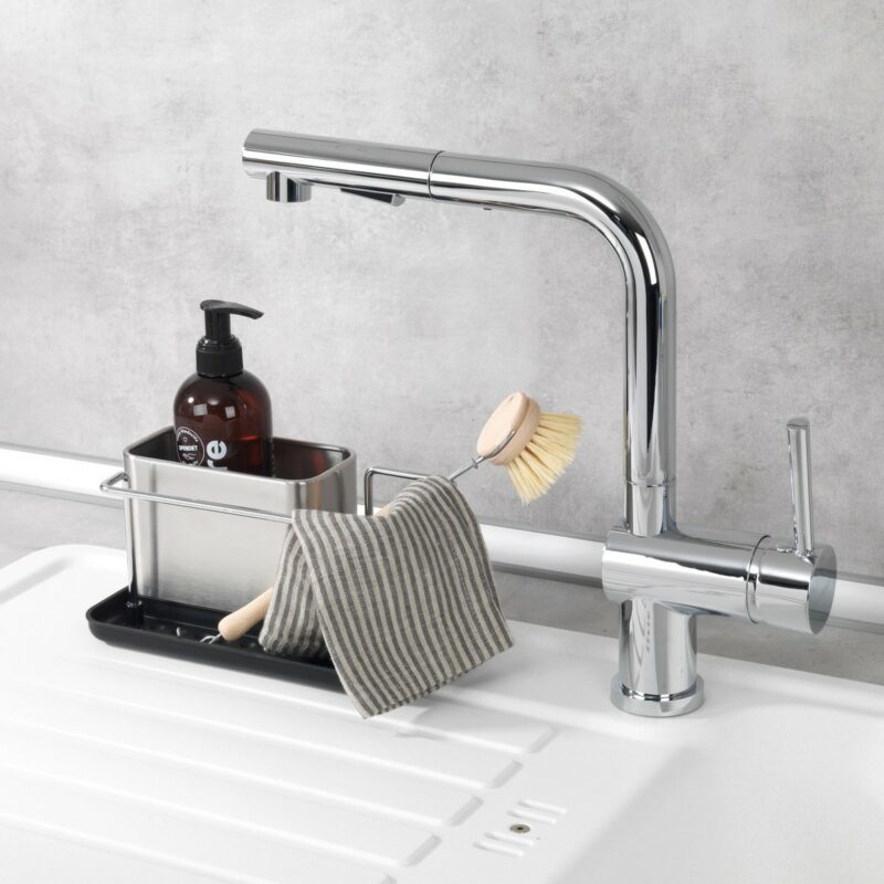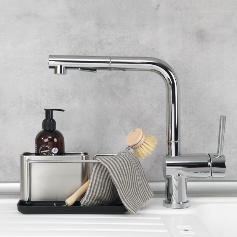 Vysoko kvalitný nerezový organizér nemeckej firmy Wenko pomôže zorganizovať umývacie potreby na jedno miesto a udržať tak poriadok pri dreze. Do úložného priestoru sa zmestí umývací prostriedok, hubka, drôtenka, kefy a pod. Handričku alebo utierku ľahko zavesíte, necháte voľne uschnúť bez toho, aby ste pokladali na kuchynskú dosku alebo nechávali ležať v dreze.Zamedzíte tým rastu baktérií a vzniku zatuchnutého zápachu. Tento elegantný a praktický organizér sa hodí do akéhokoľvek interiéru kuchyne. Kvalitný výrobok nemeckej firmy Wenko.
