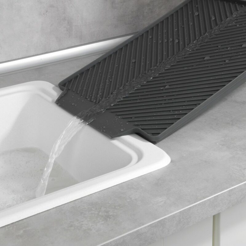 Praktická a vynikajúca odkvapkávacia podložka vyrobená z vysoko kvalitného odolného plastu sa stane nevyhnutným pomocníkom v každej kuchyni. Šikmé drážkovanie zabráni hromadeniu vody pod riadom a zároveň posunu riadu po podložke. Vďaka sklonu plochy podložky môže voda odtekať rovno do drezu.Ak nemáte už v umývačke dostatok miesta, alebo potrebujete narýchlo umyť pár hrnčekov, tanierikov, potom je tento odkvapkávač ideálnym pomocníkom, ktorý skvele zapadne do akéhokoľvek interiéru kuchyne. Kvalitný značkový výrobok nemeckej firmy Wenko.