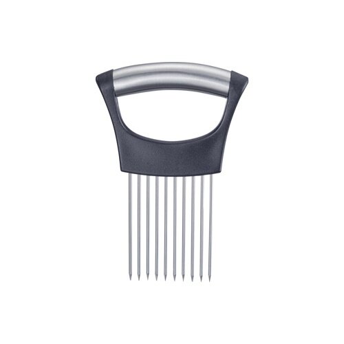 Toto kvalitné držadlo na ovocie a zeleninu je vynikajúce pre ľahké a bezpečné krájanie nielen cibule ale napríklad aj mäsa. Držiak s 10 ostrými hrotmi je vyrobený z prvotriednej nehrdzavejúcej ocele a odolného plastu bez BPA. Vhodné do umývačky riadu.
