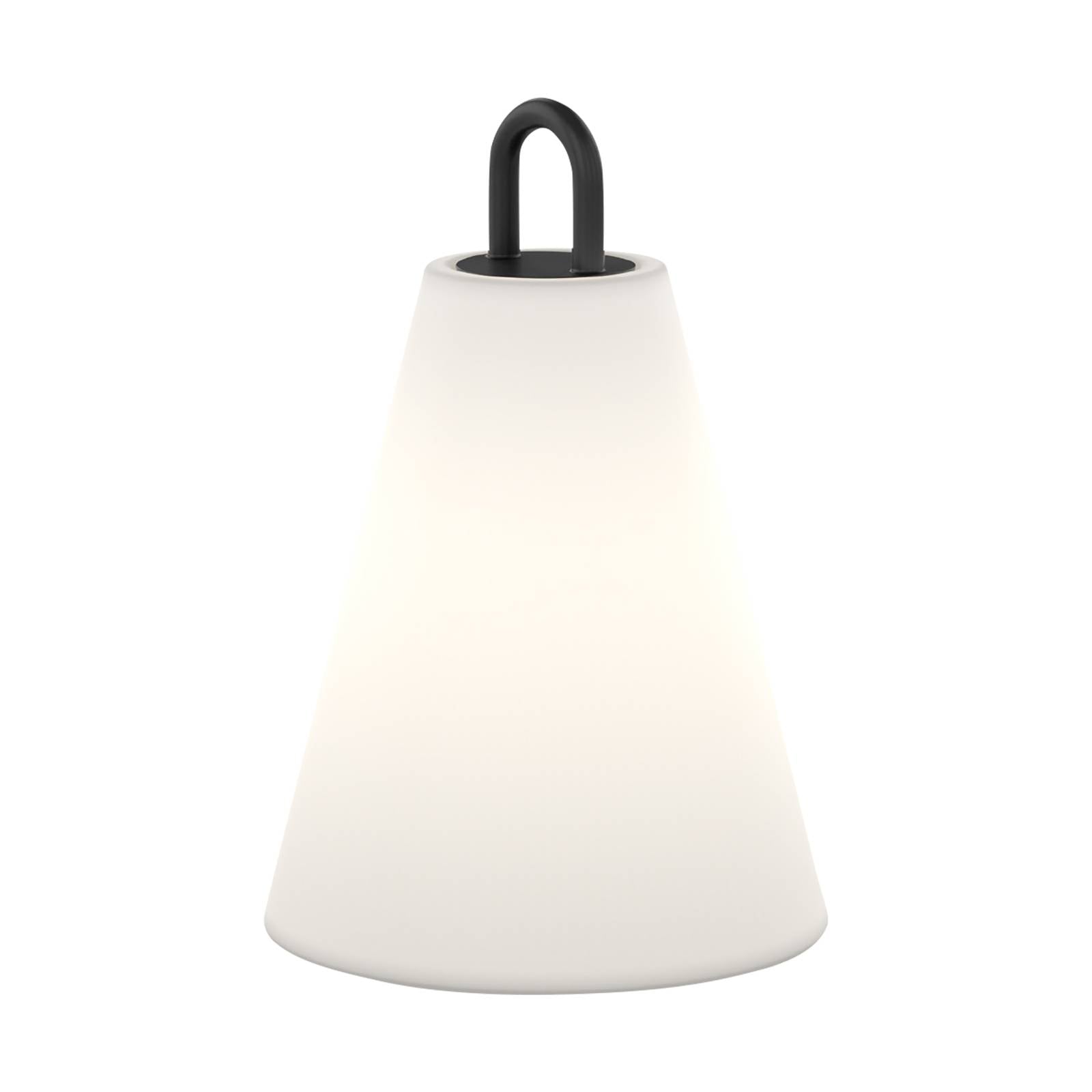 Costa 1.0 – vonkajšie dekoratívne svetlo s batériovou prevádzkou a funkciou zmeny farby Zemné svetlo Costa 1.0 je priateľským svetelným akcentom v záhrade alebo na terase. Je vyrobené z opálového plastu v tvare zrezaného kužeľa, ktorý pri prevádzke svieti ako rovnomerne osvetlená guľa. Vypínač, ktorý umožňuje aj nastavenie teploty farieb, sa nachádza vedľa nabíjacej zásuvky. V hornej časti je pridané farebné očko na zavesenie dekoratívneho LED svetla – Trieda ochrany: IP65 – Zmena farby: teplá biela až univerzálna biela – Nabíjateľná batéria: Li-Ion 3,7 V, 4 000 mA – Súčasťou je nabíjací kábel so zástrčkovou napájacou jednotkou na nabíjanie v suchom vnútornom priestore – Doba nabíjania: 5 h – Doba svietenia na jedno nabitie: 8 h – Ďalšie príslušenstvo je k dispozícii samostatne