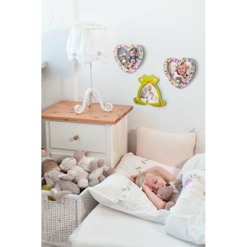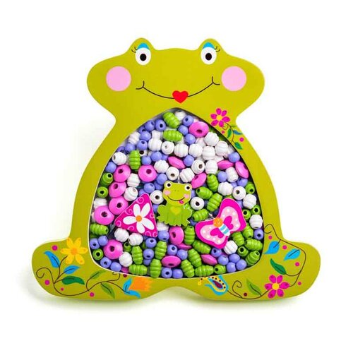 Krásna sada farebných korálikov v peknej drevenej krabičke v tvare žabky urobí radosť každej malej slečne. Sada obsahuje: farebné koráliky rôznych tvarov, korálky s motívom žabky a šnúrky na navliekanie. Drevená žabka, v ktorej sú korálky umiestnené, slúži zároveň ako rámček na fotografiu, ktorý je vybavený kovaním na zavesenie. Rozmery žabky: 21,7 x 19,5 x 1,9 cm.