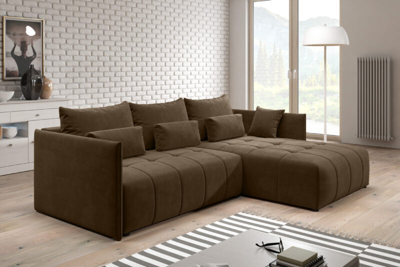 Rohová sedačka XÉNIA je navrhnutá v modernom a nadčasovom prevedení. Oceníte štýlové opierkové vankúše ale aj elegantné prešívanie, ktoré vytvára zaujímavý vzor. Malé vankúšiky sú v cene sedačky a dodávajú jej šmnc.Sedačka je vyrobená v kombinácii vlnovcovej pružiny a PUR peny s hustotou T-30. Je čalúnená kvalitnou látkou Monolith 20. Sedačka disponuje jedným úložným priestorom a praktickou funkciou rozkladu, ktorá využíva mechanizmus Automat DL. Po rozklade vznikne spacia plocha 147 x 232 cm, vhodná na príležitostné spanie.Rozmery (š,v,h): 245 x 87 x 182 cm. Výška bez opierkových vankúšov: 71 cm. Hĺbka sedenia bez vankúšou 90 cm, hĺbka sedenia po vankúše 50 cm. Výška sedacej plochy: 40 cm. Plastové nožičky majú výšku 3,5 cm. Sedačka má univerzálny roh – je možné si ju zmontovať v ľavom aj pravom prevedení rohu.V ponuke nájdete aj ďalšie farebné prevedenia tejto štýlovej sedačky. Dodávame v demontovanom stave.