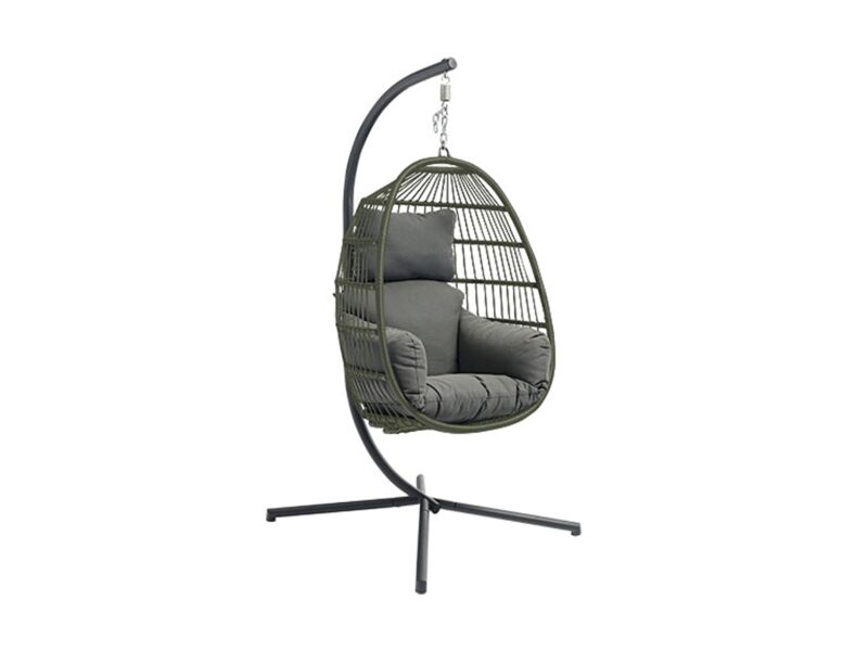 Štýlové závesné kreslo Yoyo s robustným antracitovým hliníkovým rámom a UV-odolným prútím poskytuje maximálny komfort pri sedení.