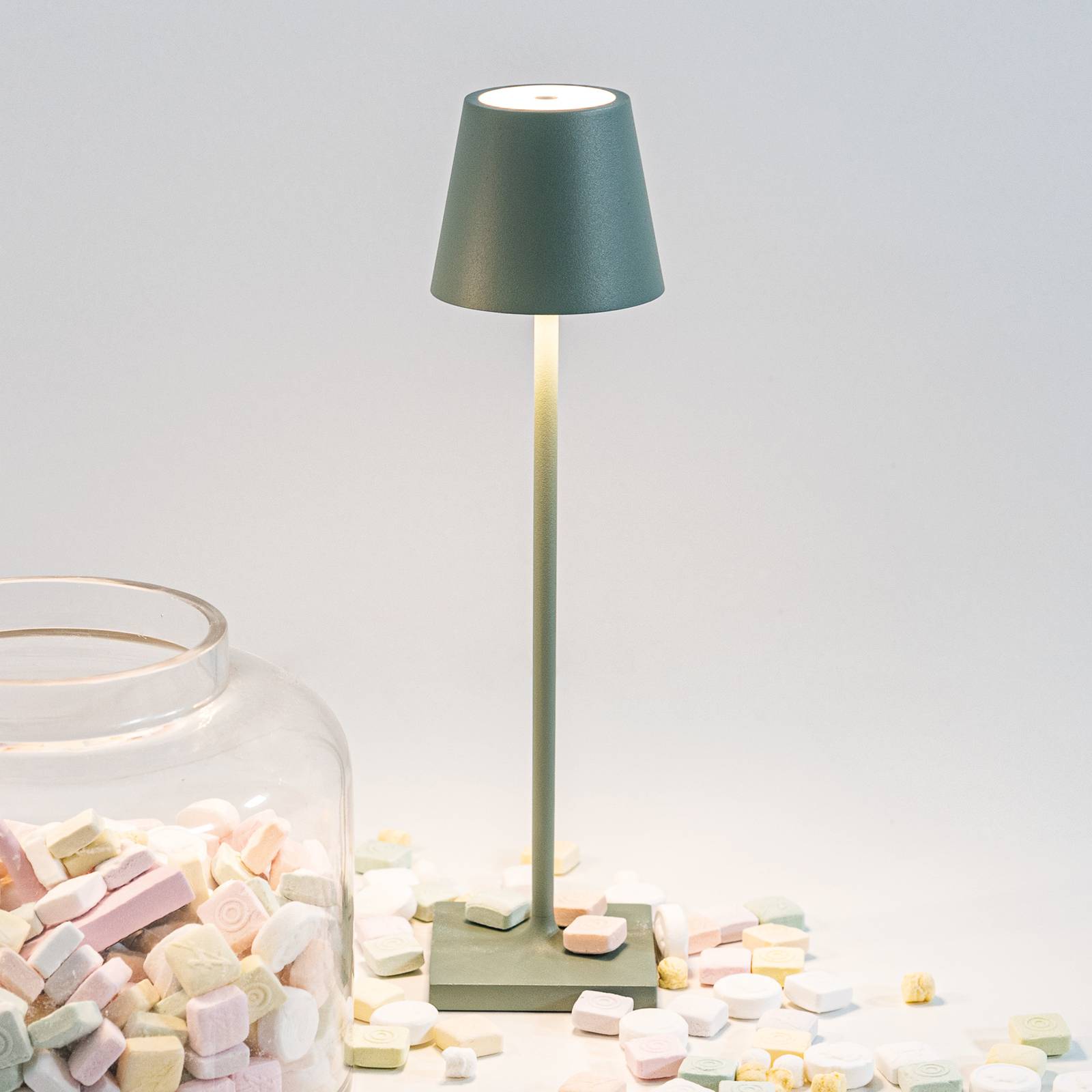Zafferano Poldina micro akumulátorová lampa IP65 šalvia