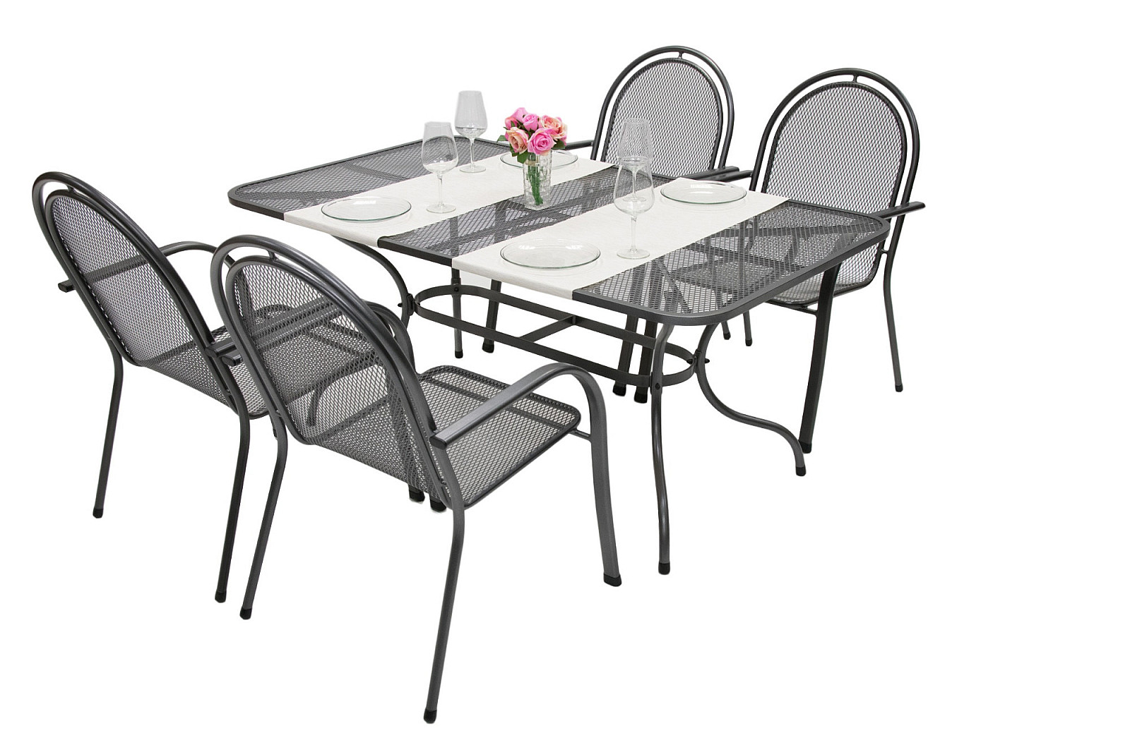 Záhradná kovová zostava CORINA III. 1+4 Stôl bdĺžníkový 160×95 cm (CT0311)