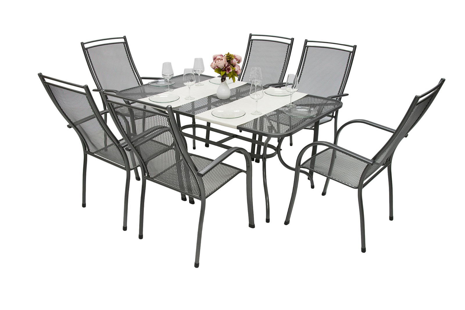Záhradná kovová zostava PALMA I. 1+6 Stôl obdĺžník 160×95 cm (CT0311)
