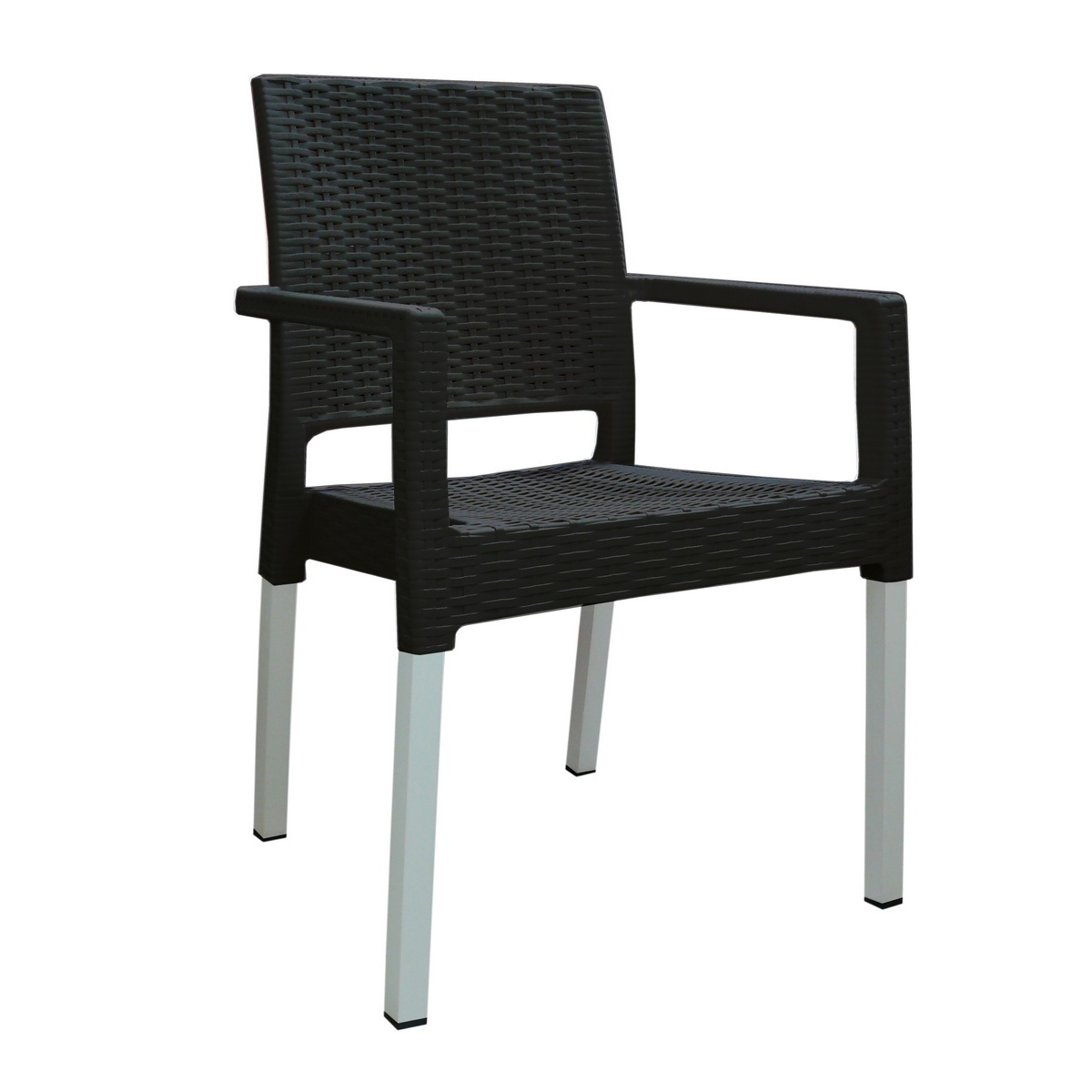 Elegantná vonkajšia stolička vám vďaka ergonomickému tvarovaniu zaistí pohodlné sedenie. Vyniká kvalitným spracovaním, moderným vzhľadom a vysokou nosnosťou. Nepotrebuje takmer žiadnu údržbu, je stohovateľná a vhodná do vonkajších aj vnútorných priestorov.Stolička má plastový ratanový výplet antracitovej farby a pevné hliníkové nohy, ktoré nikdy neskorodujú aj keď tento nábytok budete používať pri bazéne. Silne znečistený plastový nábytok ľahko umyjete tlakovou umývačkou.Plast použitý na výrobu stoličiek neobsahuje prísady recyklátu, čo zaručuje vysokú kvalitu a dlhú životnosť. Použitá farba má perfektné technologické vlastnosti, ktoré stoličkám poskytujú atraktívny vzhľad a vysokú odolnosť voči UV žiareniu. Tým je zaručená dlhoročná stálosť farieb, aj keď je nábytok vystavený priamemu slnečnému žiareniu. Zároveň je nábytok odolný extrémne nízkym teplotám a intenzívnej vlhkosti, vďaka tomu je možné ho používať v interiéri aj exteriéri.