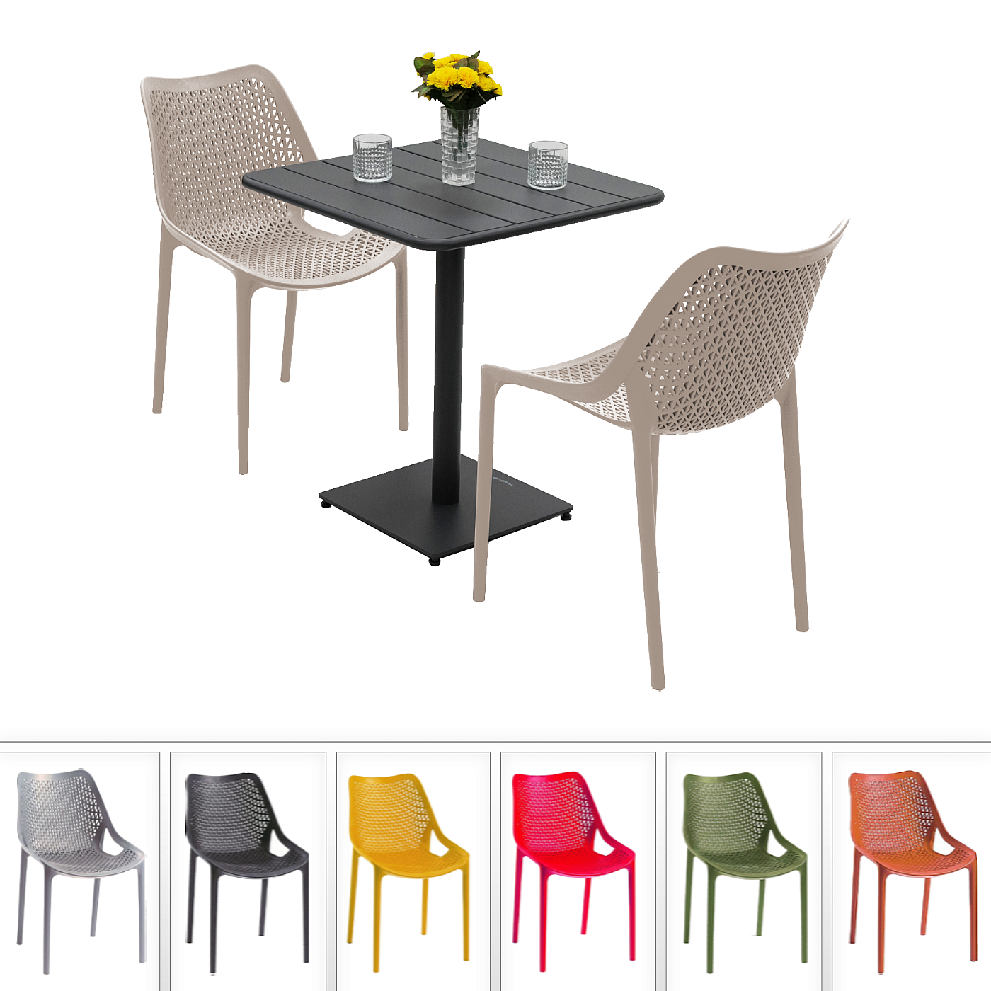 Sestava obsahuje: 1x Hliníkový stolík RUBBY 65×65 cm (antracit)