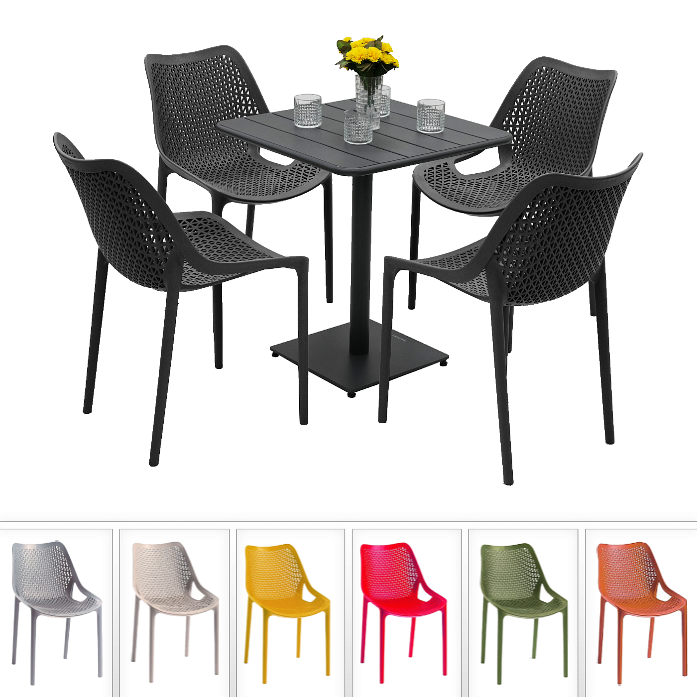 Sestava obsahuje: 1x Hliníkový stolík RUBBY 65×65 cm (antracit)