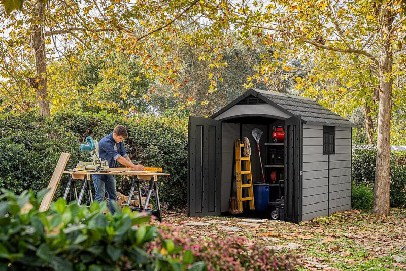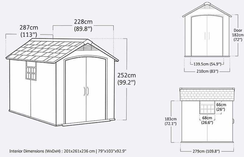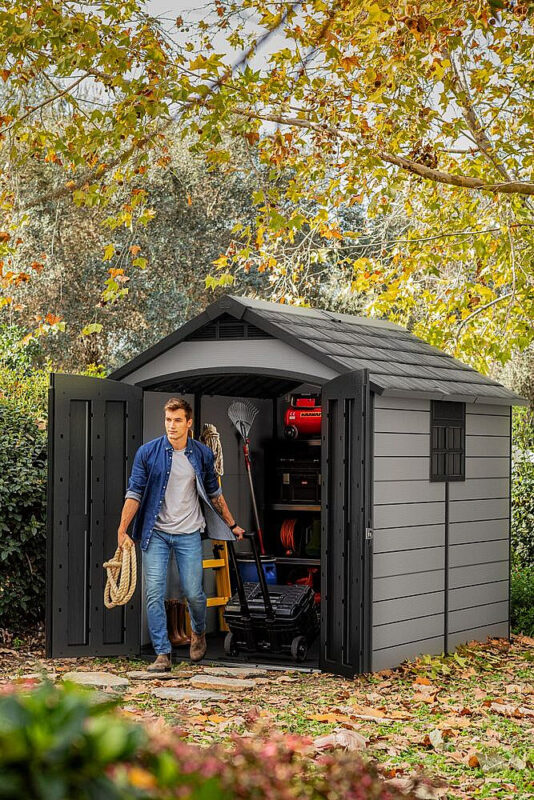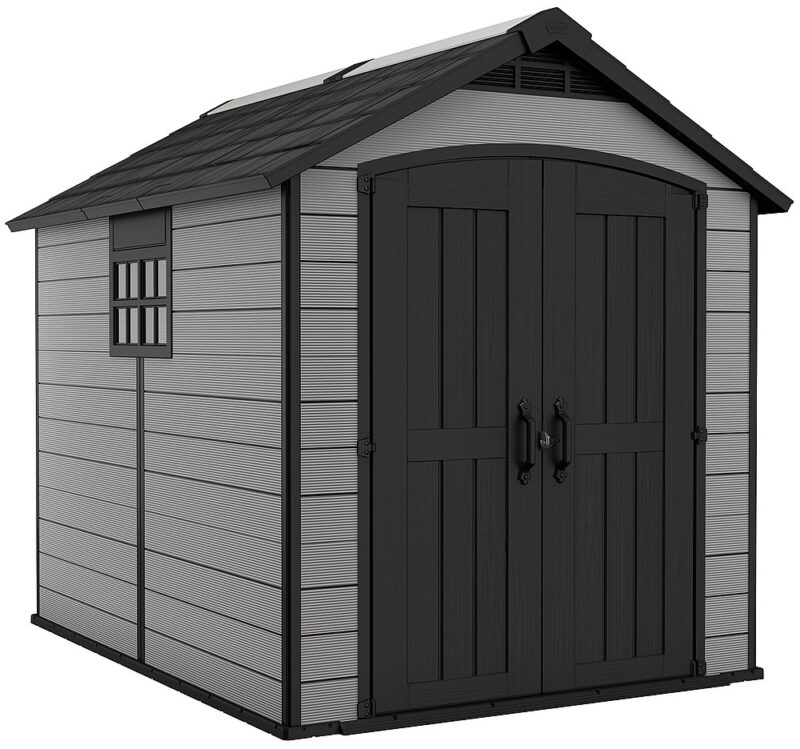 Bezúdržbový domček PREMIER má robustnú konštrukciu a je vyrobený z pevných, dvojitých, plastových stien. Je tiež vybavený pevnou dizajnovou strechou, širokými dvojitými dverami a podlahou na náročné použitie s nosnosťou 150 kg na m 2 . Domček je ideálny nielen na uschovávanie náradia a záhradných doplnkov, ale aj na kosačku alebo grill. Jeho hlavné výhody sú stabilná, spevnená oceľová konštrukcia, pevná strecha a široké dvojité dvere. Všetky domčeky Keter sú vybavené vysoko odolnou podlahou. Zaťaženie strechy až 100 kg/m 2 , odolnosť voči vetru do 145 km/hod (platí v prípade ukotvenia).