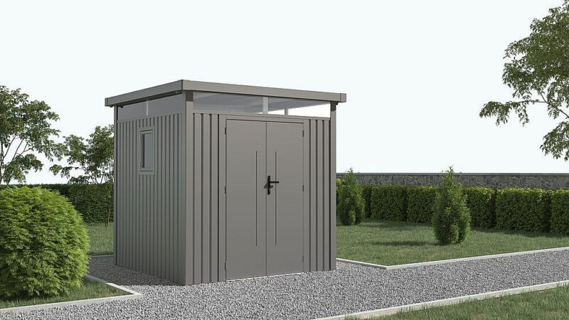 Záhradný domček v modernom dizajne sa hodí do každej záhrady.