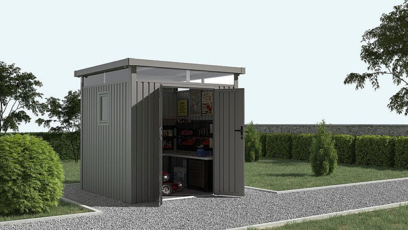 Záhradný domček využijete na uskladnenie napr. záhradného náradia, bicykla, kosačky, príslušenstva k bazénu, dreva atď.