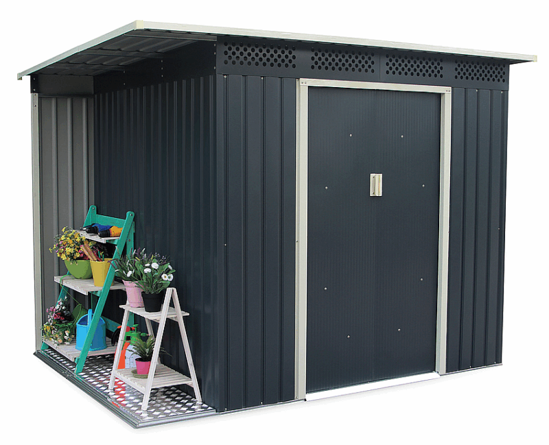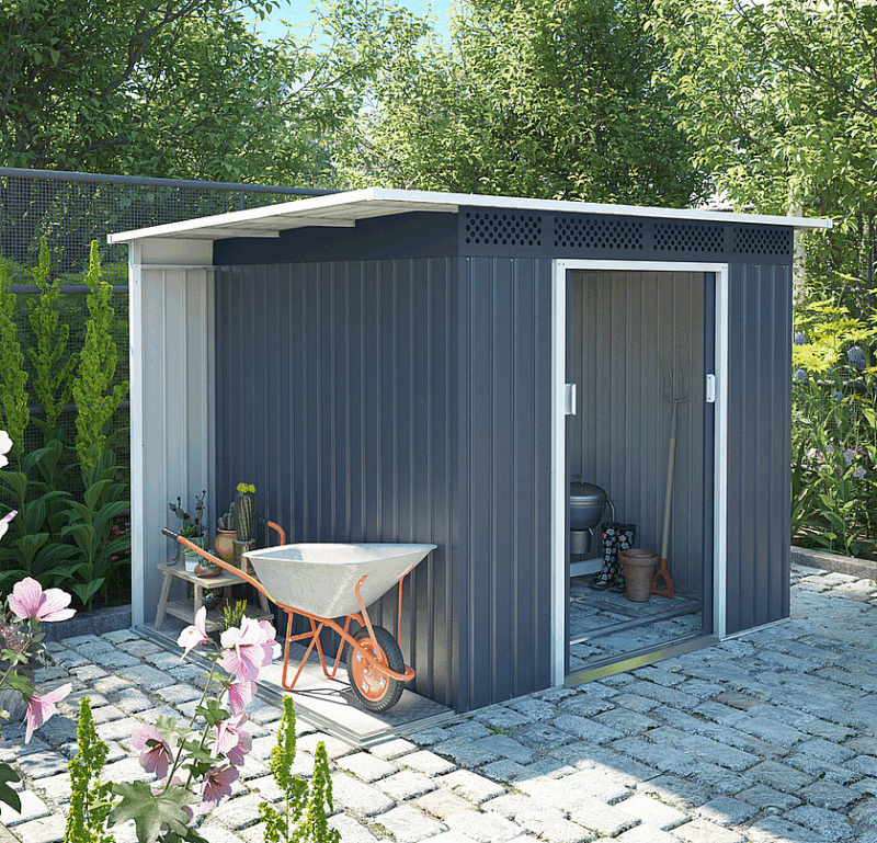 Domček má dvojité posuvné dvere, teda do neho budete mať pohodlný prístup.