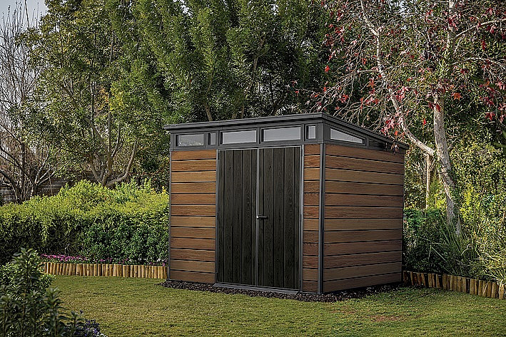 Bezúdržbový domček je vyrobený z jedinečného materiálu DECOCOAT, ktorý je inšpirovaný moderným vzhľadom v imitácii dreva. Domček má robustnú konštrukciu s dvojitými stenami a kovové výstuhy. Je tiež vybavený pevnou dizajnovou strechou, širokými dvojitými dverami a podlahou na náročné použitie s nosnosťou 150 kg na m 2 . Domček je ideálny nielen na uschovávanie náradia a záhradných doplnkov, ale aj na kosačku alebo grill. Jeho hlavné výhody sú stabilná, spevnená oceľová konštrukcia, pevná strecha a široké dvojité dvere. Všetky domčeky Keter sú vybavené vysoko odolnou podlahou. Zaťaženie strechy až 150 kg/m 2 , odolnosť voči vetru do 145 km/hod (platí v prípade ukotvenia).