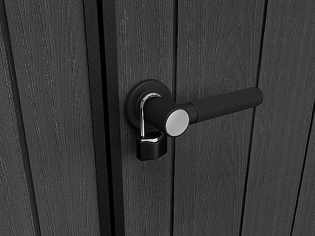 Je tiež vybavený pevnou dizajnovou strechou, širokými dvojitými dverami a podlahou na náročné použitie s nosnosťou 150 kg na m2.