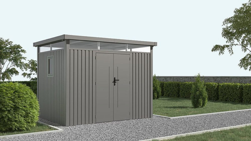 Záhradný domček v modernom dizajne sa hodí do každej záhrady.