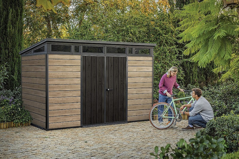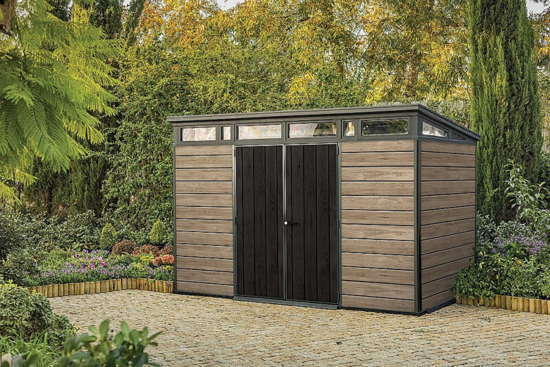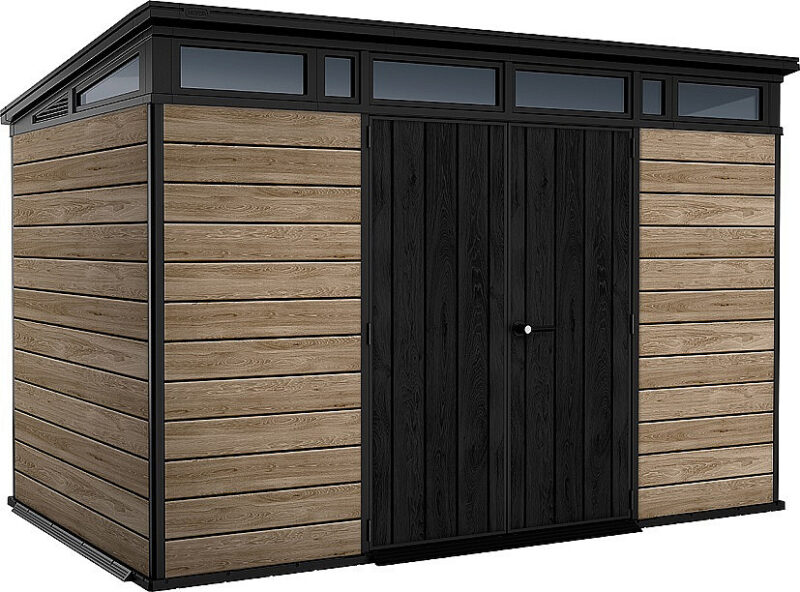 Bezúdržbový domček vyrobený z jedinečného materiálu DECOCOAT, ktorý je inšpirovaný moderným vzhľadom v imitácii dreva vo farebnom odtieni ASHWOOD – jaseňové drevo. Domček má robustnú konštrukciu s dvojitými stenami a kovové výstuhy. Je tiež vybavený pevnou dizajnovou strechou, širokými dvojitými dverami a podlahou na náročné použitie s nosnosťou 150 kg na m 2 . Domček je ideálny nielen na uschovávanie náradia a záhradných doplnkov, ale aj na kosačku alebo grill. Jeho hlavné výhody sú stabilná, spevnená oceľová konštrukcia, pevná strecha a široké dvojité dvere. Všetky domčeky Keter sú vybavené vysoko odolnou podlahou. Zaťaženie strechy až 150 kg/m 2 , odolnosť voči vetru do 145 km/hod (platí v prípade ukotvenia).