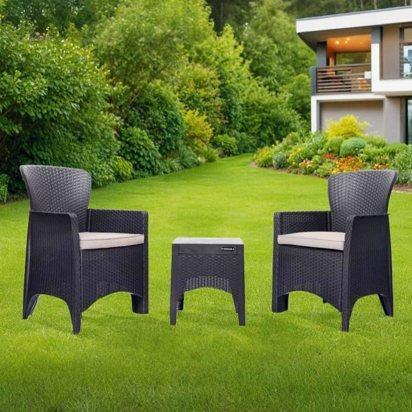 Záhradný set pre 2 osoby – 2 kresla s poduškami + stolík