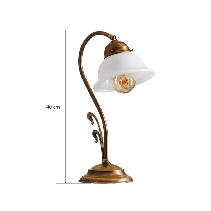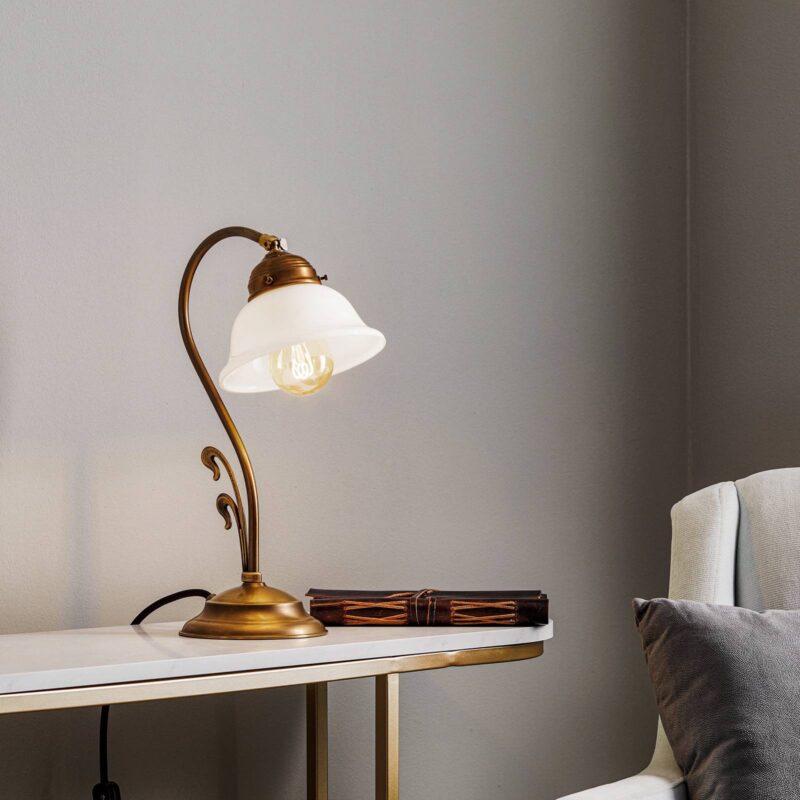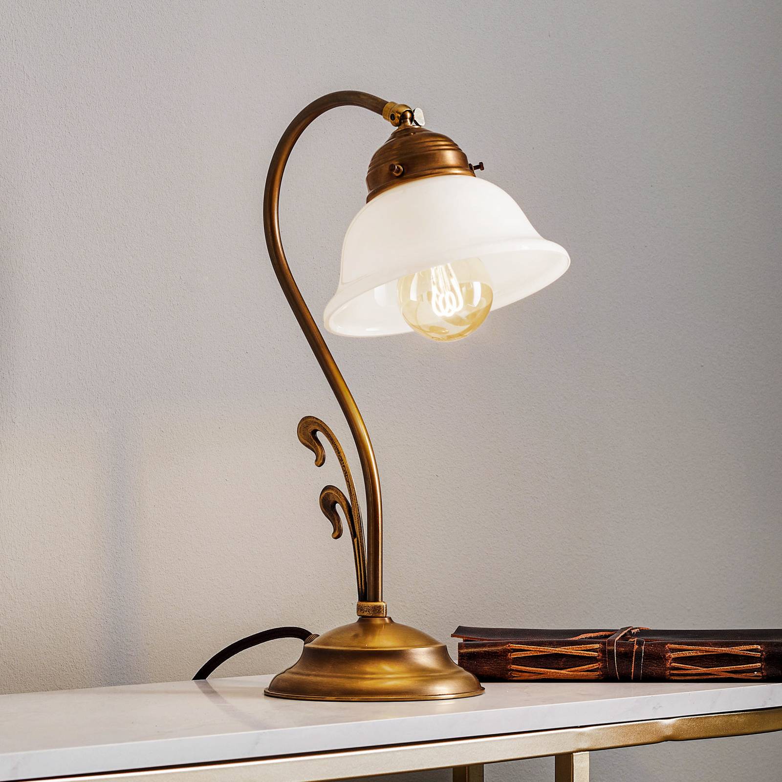 Atraktívna stolová lampa Hannelore vyžaruje historický šarmMilovníci svietidiel, ktorí majú radi klasický vintage vzhľad, si so stolovou lampou Hannelore prídu na svoje. Toto mimoriadne atraktívne svietidlo upúta pozornosť najmä svojím zaobleným dizajnom. Vzorom pre tento neobyčajný dizajn sú lampy, ktoré boli vyrobené okolo roku 1900. Hannelore bola vyrobená z mosadze a fúkaného skla, a preto je mimoriadne kvalitná. Zakrivený rám dodáva stolovej lampe veľmi osobitý charakter, ktorý pôsobí hravo a zároveň dospelo. Hannelore tak získava ľahkosť, ktorá uvoľní každú miestnosť a každý štýl zariadenia. Hannelore sa rada začlení do klasického interiéru. Možno ju však použiť aj na štýlové prestávky