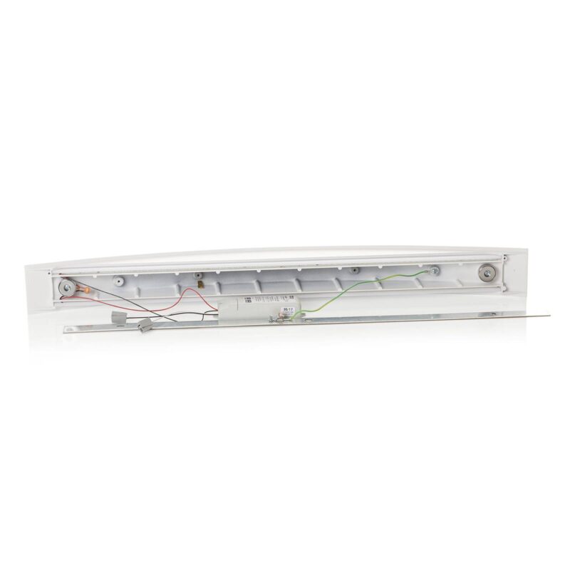 Zakrivené nástenné svietidlo LED z hliníkaToto nástenné svietidlo LED, ktorého zakrivené telo je vyrobené z bielo lakovaného hliníka, poskytuje krásne nepriame svetlo. Svetlo uniká smerom nahor a nadol, kde sa nachádza difúzor zo saténového polymetylmetakrylátu, ktorý spôsobuje rovnomernejšie rozloženie svetla. Teplé biele LED diódy s výkonom 28 W majú mimoriadne vysokú svietivosť a nástenné svietidlo je vynikajúcim zdrojom svetla aj vo verejných priestoroch v modernom štýle.