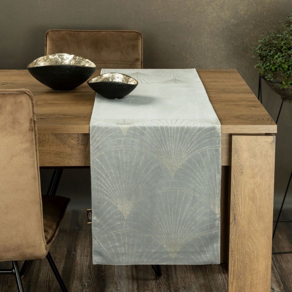 Zamatový stredový obrus s lesklou potlačou sivej farby Šírka: 35 cm | Dĺžka: 140 cm