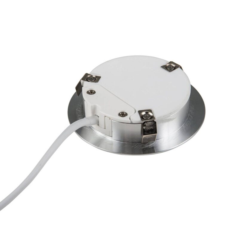 Okrúhle zapustené bodové LED svietidlo Austin pre najužšie stropné priestory Zapustené bodové LED svietidlo Austin je vyrobené z hliníka a vďaka svojej nízkej inštalačnej hĺbke iba 2 cm sa dá inštalovať aj v najužších stropných priestoroch. Pre prevádzku nie je potrebný žiadny transformátor, Austin je pripojený priamo k elektrickému vedeniu 230 V AC. Svetlo je vyžarované pod uhlom lúča 35 stupňov, svieti príjemnou teplou bielou farbou a vytvára útulné prostredie v každej miestnosti. – veľmi nízka konštrukčná výška – CNC frézované, pevné hliníkové puzdro