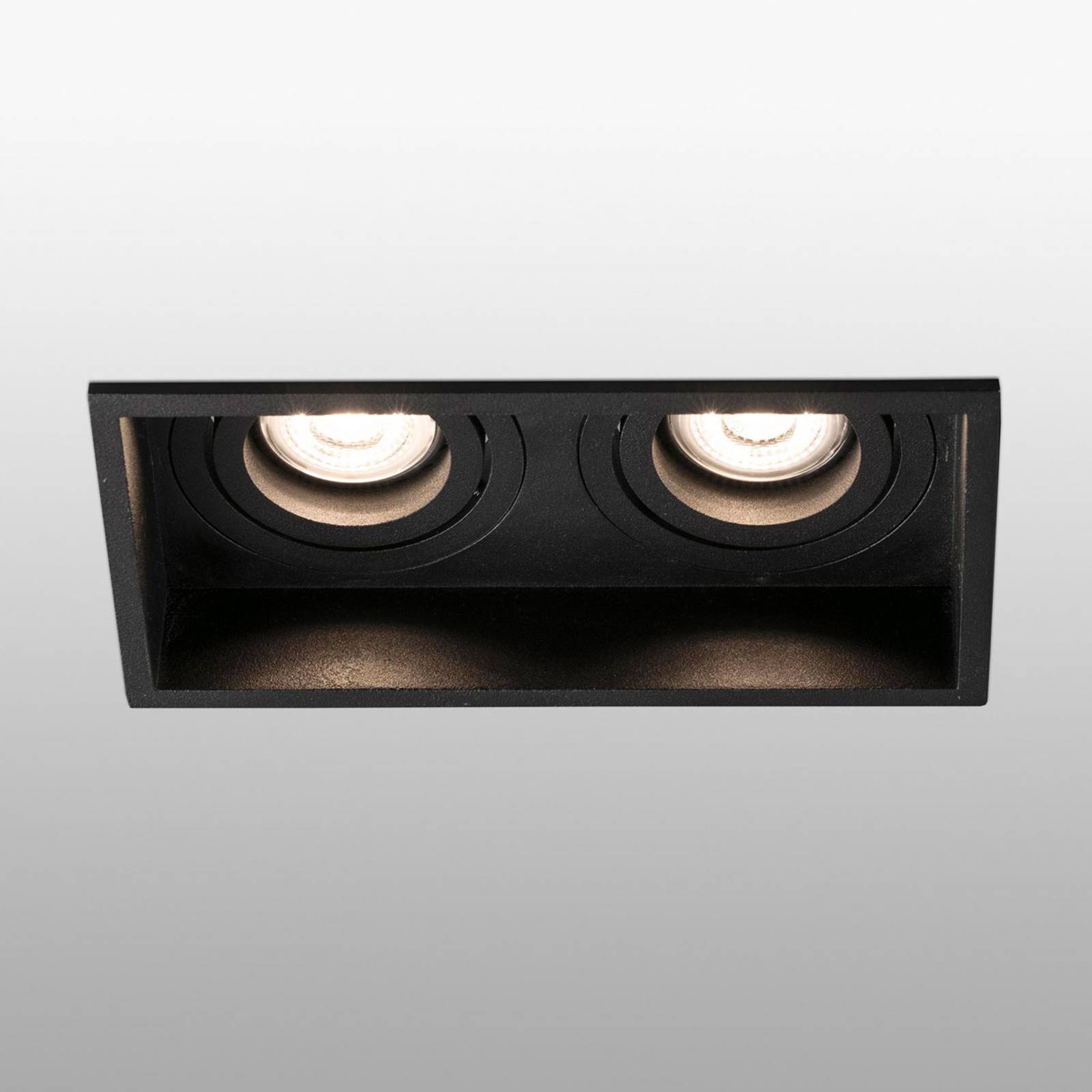Zapustené svietidlo Hyde s hliníkovým rámom Moderné svietidlo Hyde je dvojlampový vstavaný reflektor s hliníkovým rámom tón v tóne. Používajú sa tu dva svetelné zdroje GU10 (nie sú súčasťou dodávky). Tie sa dajú otáčať o 30°, a tak umožňujú individuálne nastavenie svetelného lúča. Zapustené svietidlo Hyde je ideálne do moderných interiérov, či už do obývačky alebo na chodbu