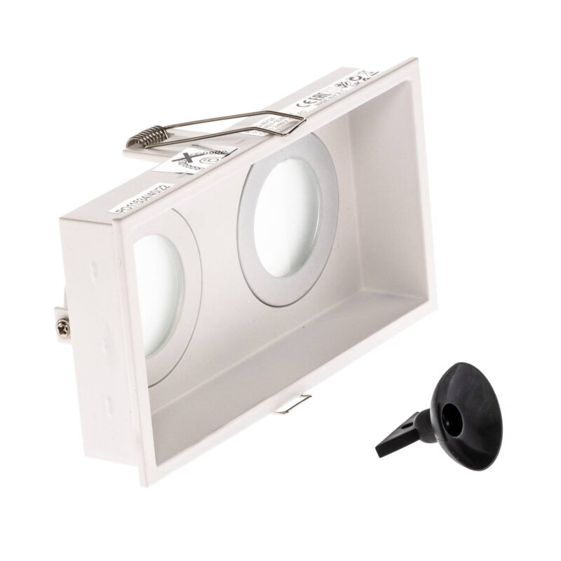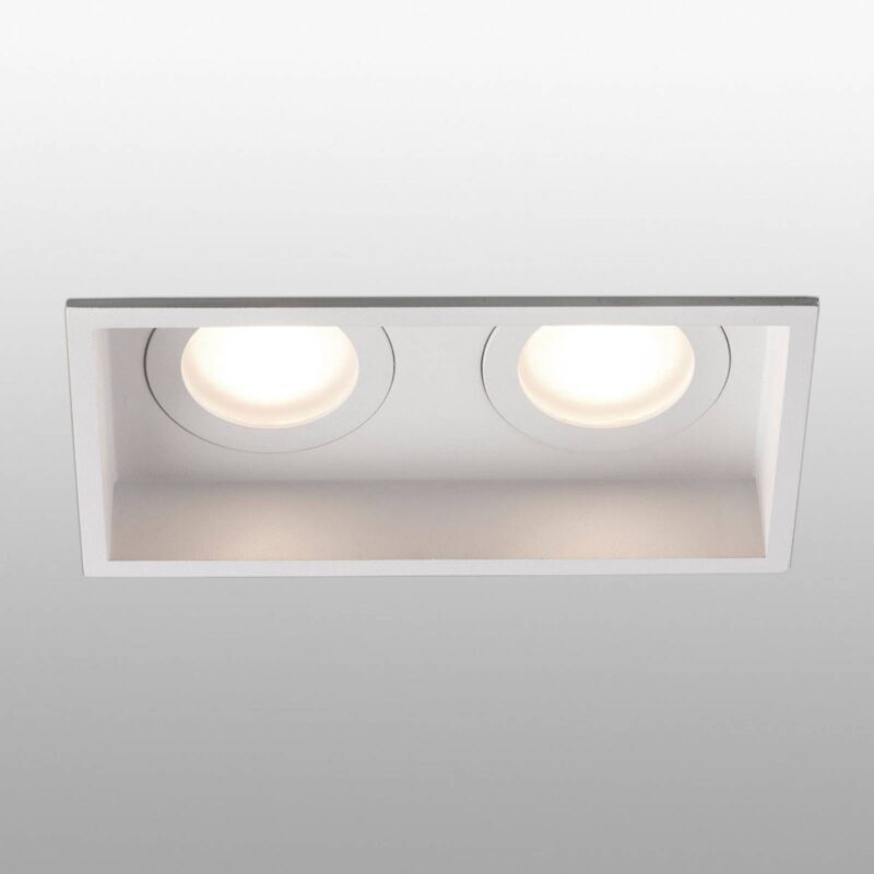 Dvojlampovo zapustené svietidlo Hyde s krytím IP44 Moderné zapustené svietidlo je vybavené estetickým hliníkovým rámom. Dve žiarovky GU10, ktoré nie sú súčasťou dodávky, sú upevnené v tele svietidla a vyžarujú smerom nadol. Takto je možné ľahko dosiahnuť vynikajúce osvetlenie určitej oblasti v miestnosti. Vďaka stupňu krytia IP44 je Hyde ideálny do kúpeľne, ale môže sa používať aj na chodbách alebo v kuchyni