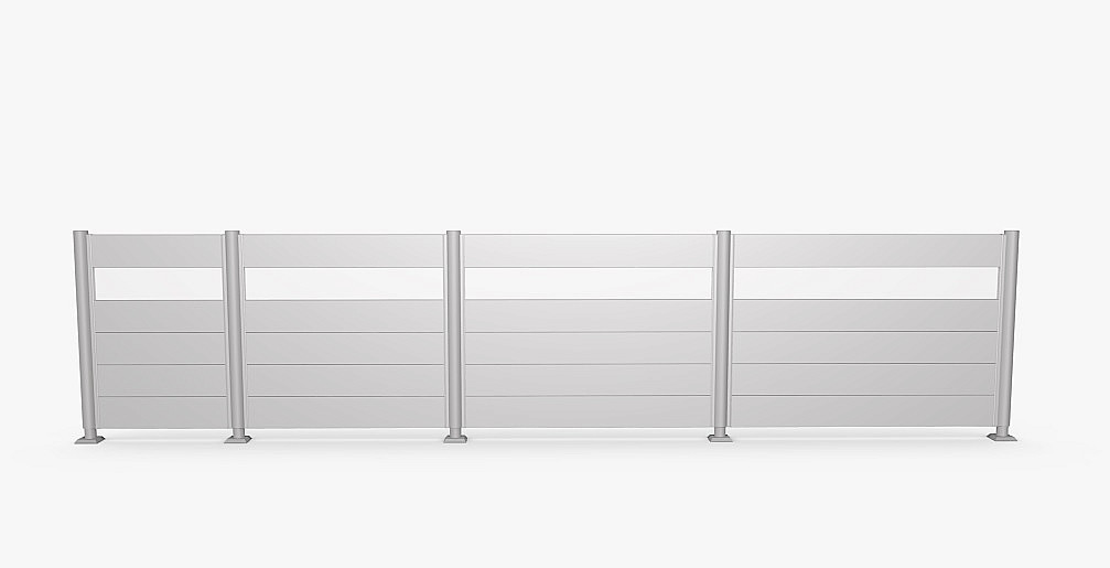 Obsahuje 5 kovových panelov, 1 panel z akrylového skla a dve vodiace lišty na montáž medzi dva stĺpiky zásteny pre ochranu súkromia.
