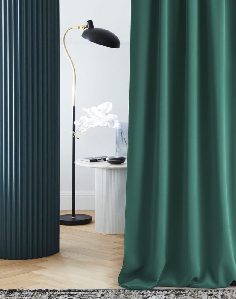 Zatemňujúci záves Laurel tmavo zelenej farby so zavesením na kruhy 140 x 260 cm
