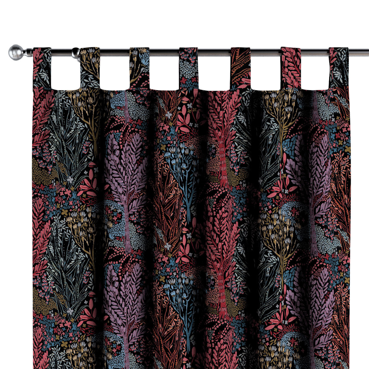 Záves na pútkach, farebný kvetinový motív na čiernom pozadí, Intenso Premium, 144-26