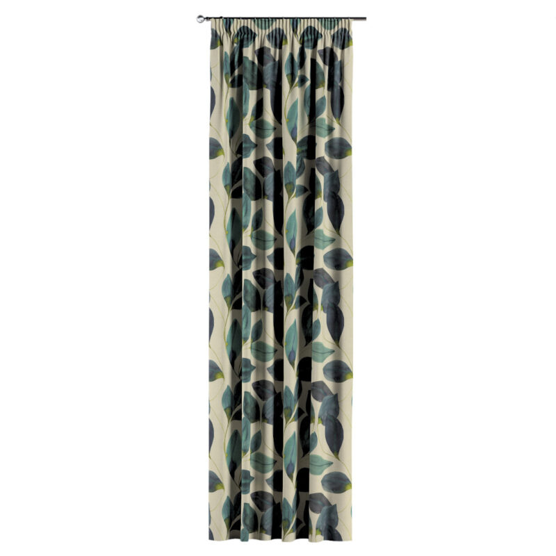 Záves na riasiacej páske, smaragdovo – zelené listy s fialovým nádychom na plátne, Abigail, 143-15