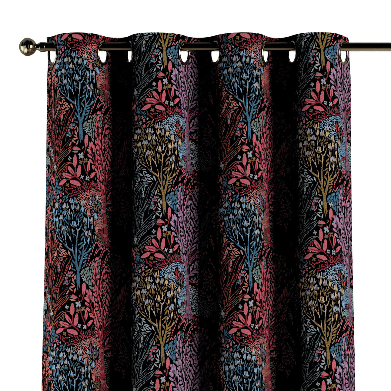 Záves s kolieskami, farebný kvetinový motív na čiernom pozadí, Intenso Premium, 144-26