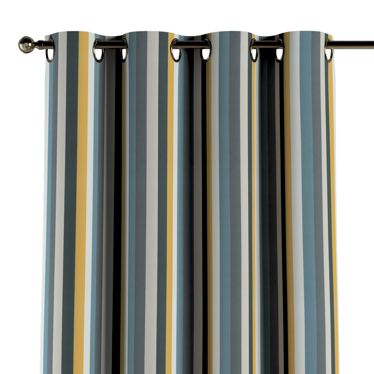 Záves s kolieskami, pásy v odtieňoch žlto-hnedo-modrých farbách, Vintage 70’s, 143-59