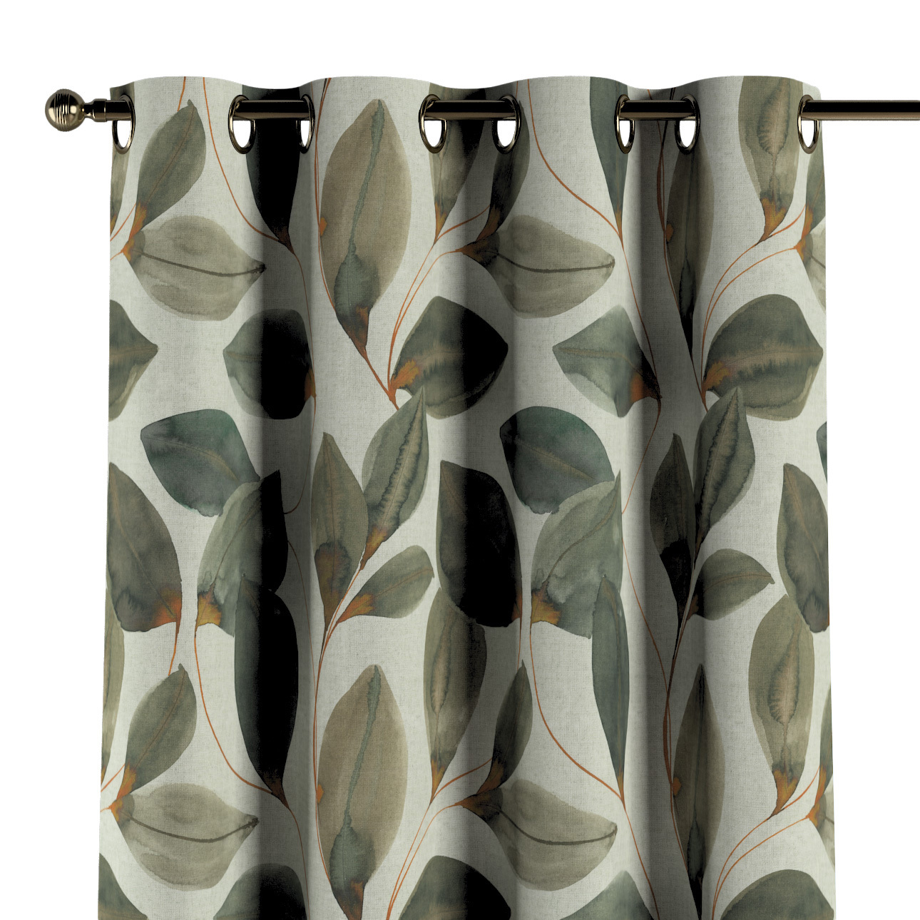 Záves s kolieskami, pomarančovo – hnedé listy na sivom plátne, Abigail, 143-17