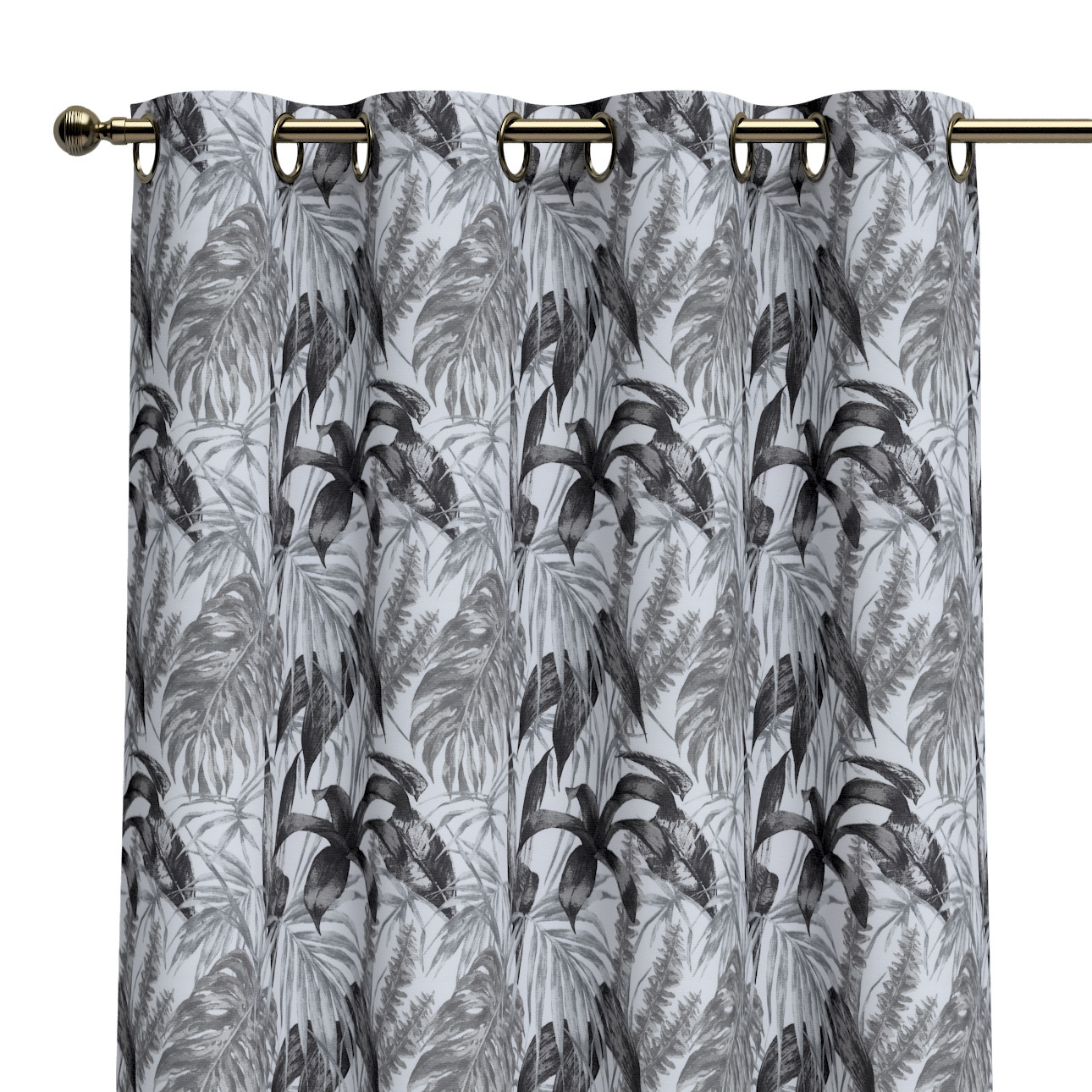 Záves s kolieskami, šedo – čierne listy na bielom pozadí, Výpredaj, 151-96