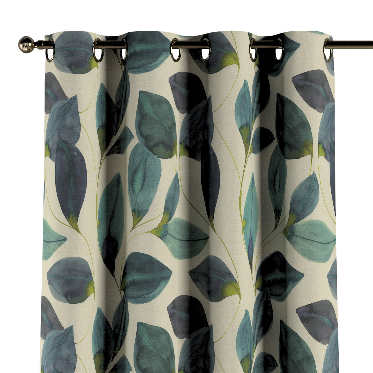 Záves s kolieskami, smaragdovo – zelené listy s fialovým nádychom na plátne, Abigail, 143-15