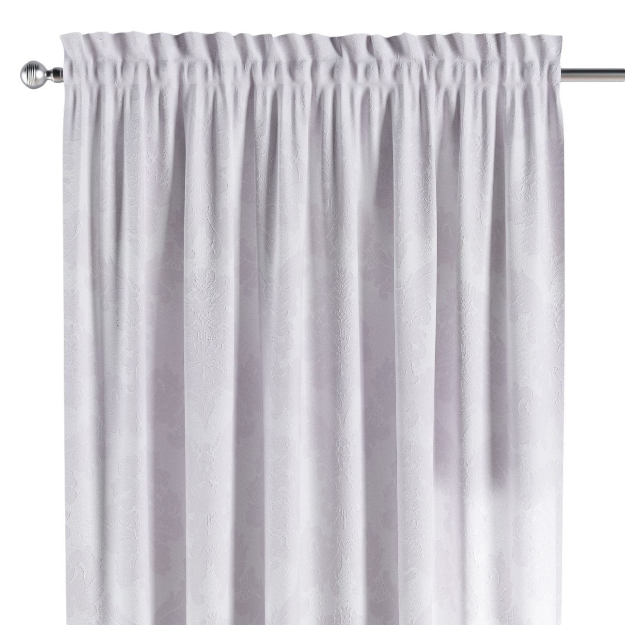 Záves s tunelom a volánom, biela tkanina s vytkaným ornamentom , Damasco, 613-00