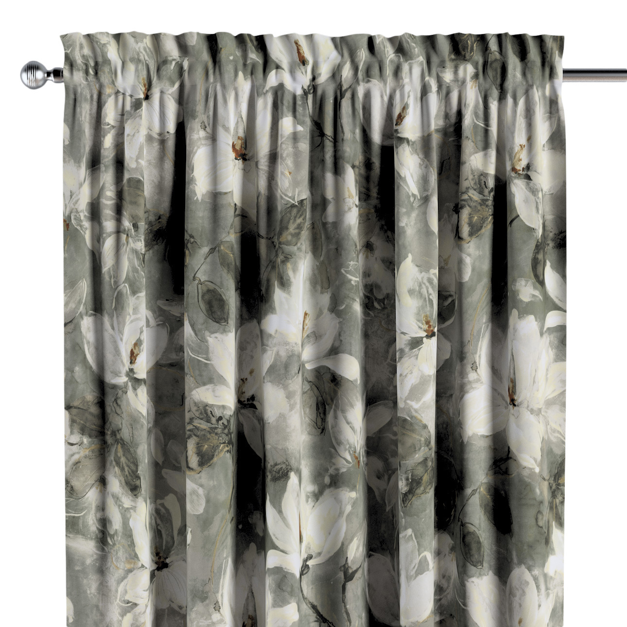 Záves s tunelom a volánom, grå-hvid, Velvet, 184-24