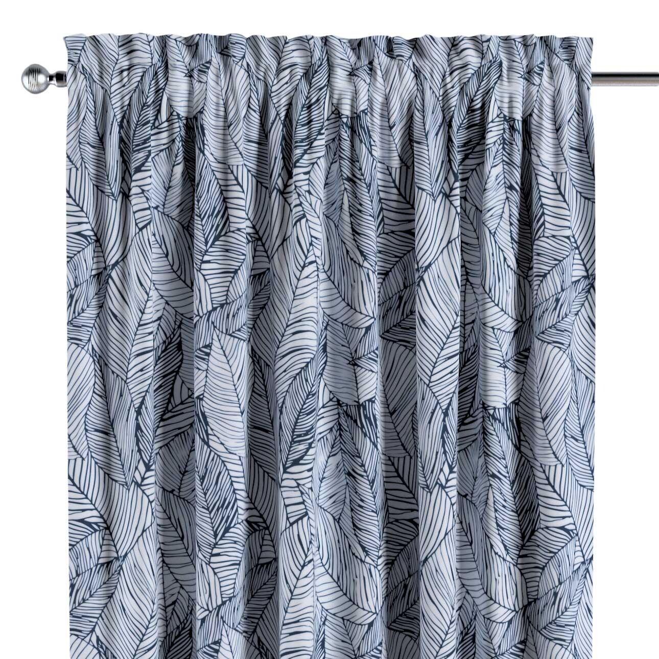 Záves s tunelom a volánom, Hvid med mørkeblå, Velvet, 704-34