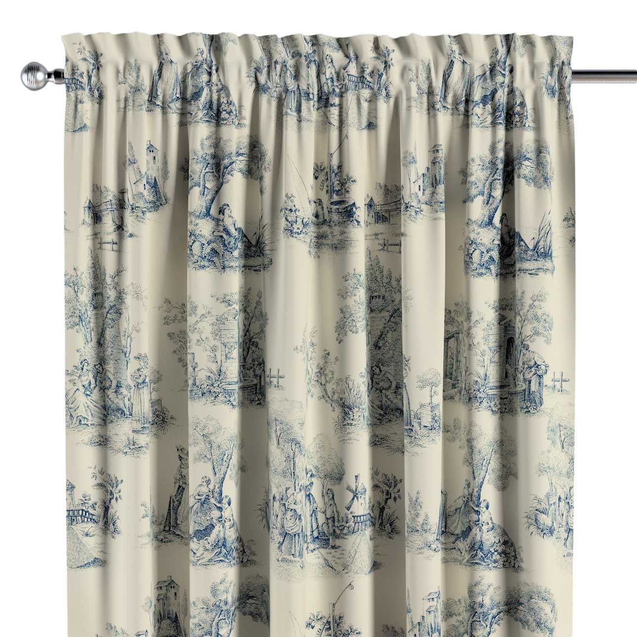 Záves s tunelom a volánom, modrý vzor na svetlobéžovom podklade, Avinon, 132-66
