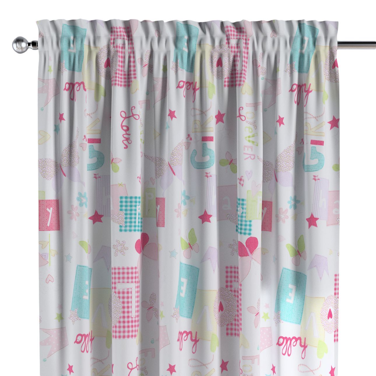 Záves s tunelom a volánom, pastelové vzory na bielom podklade, Výpredaj, 141-51