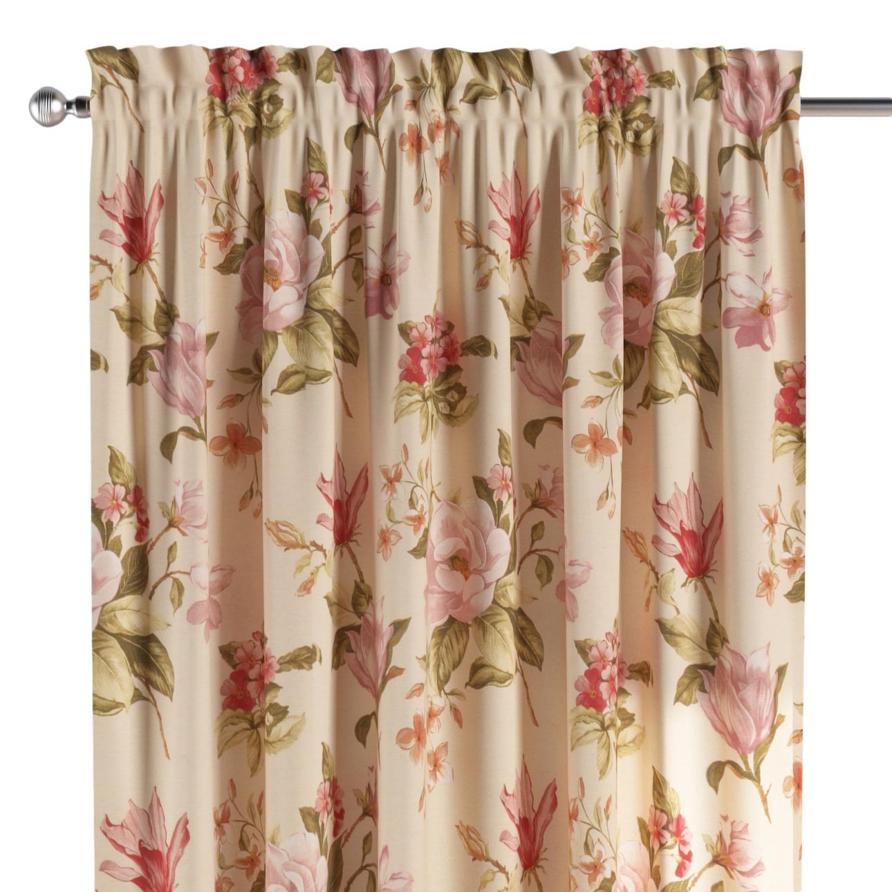 Záves s tunelom a volánom, výrazný vzor ružovozelené kvety na ľanovom podklade , Londres, 143-87