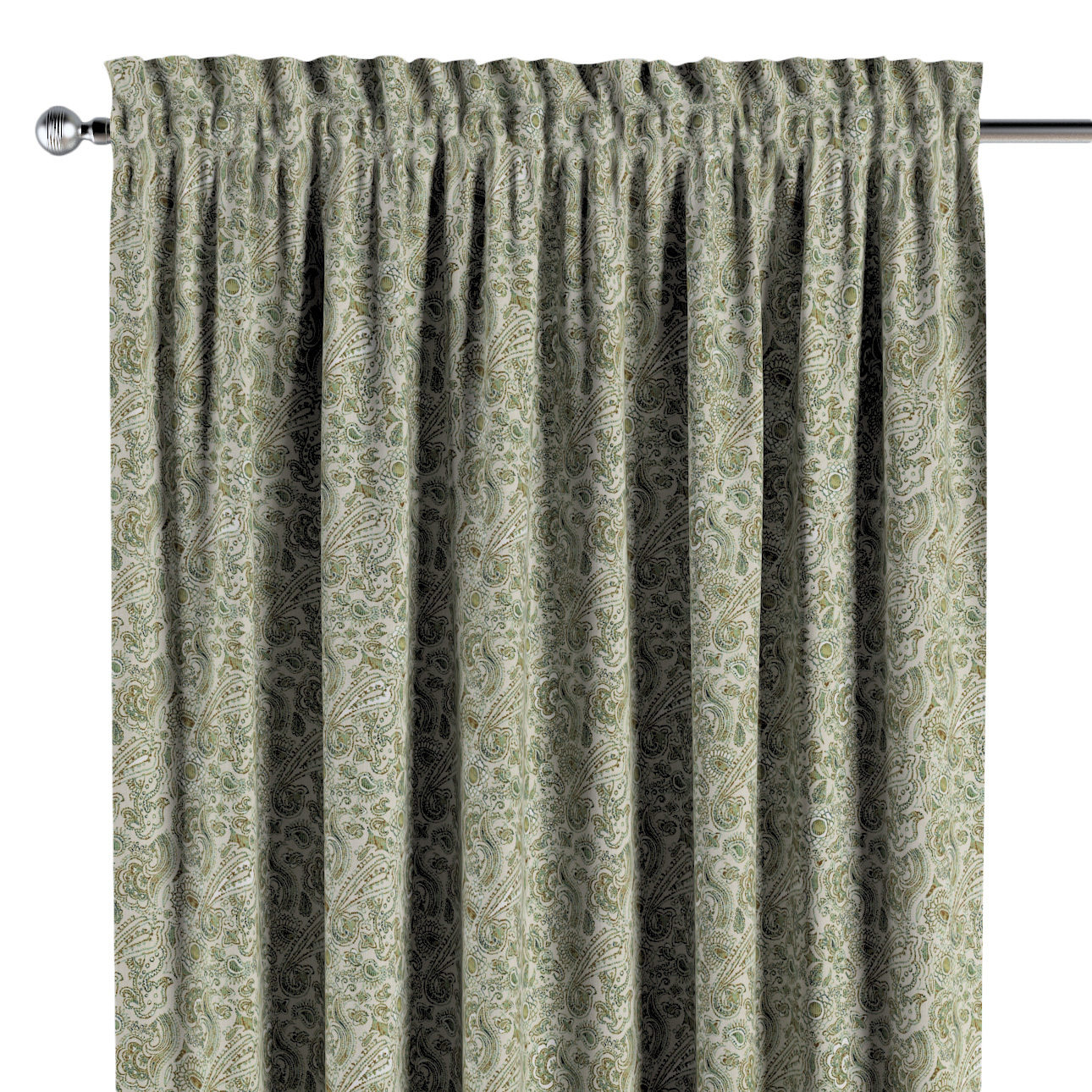 Záves s tunelom a volánom, zeleno – pomarančové vzory na béžovom podklade, Flowers, 143-68