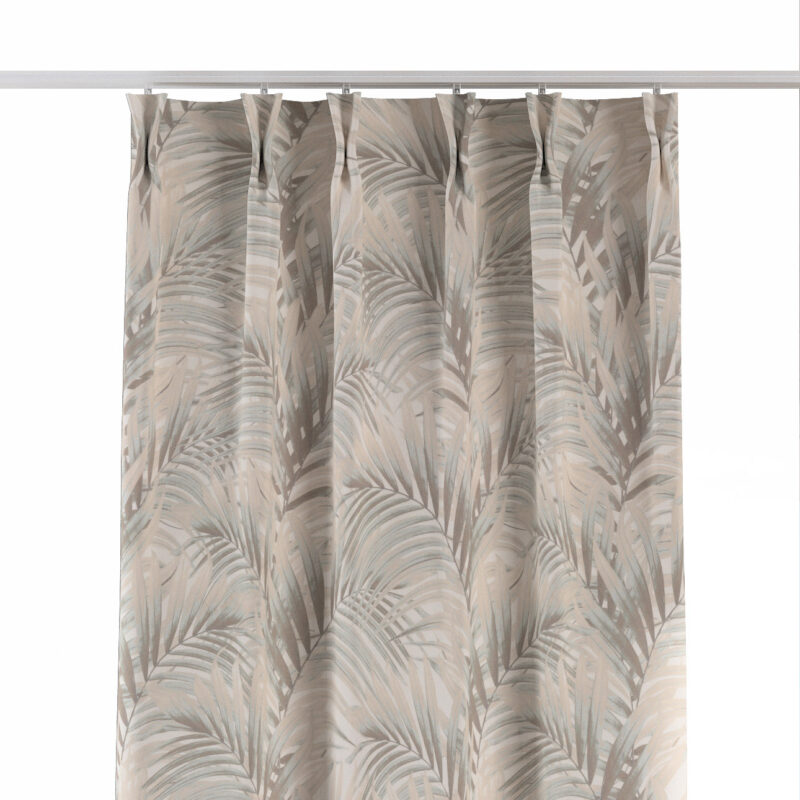 Záves so systémom FLEX (dvojité spony flex), béžové a krémové palmové listy na bielom pozadí , Gardenia, 142-14