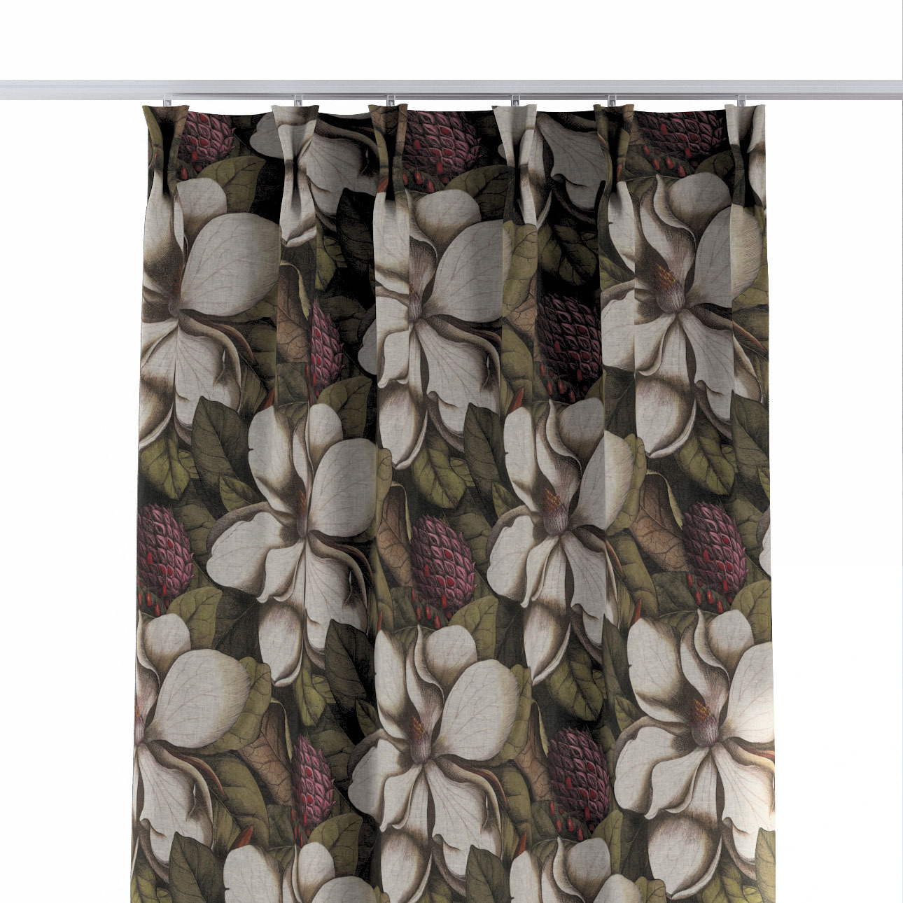 Záves so systémom FLEX (dvojité spony flex), béžový a zelený kvetinový motív, Eden, 144-24