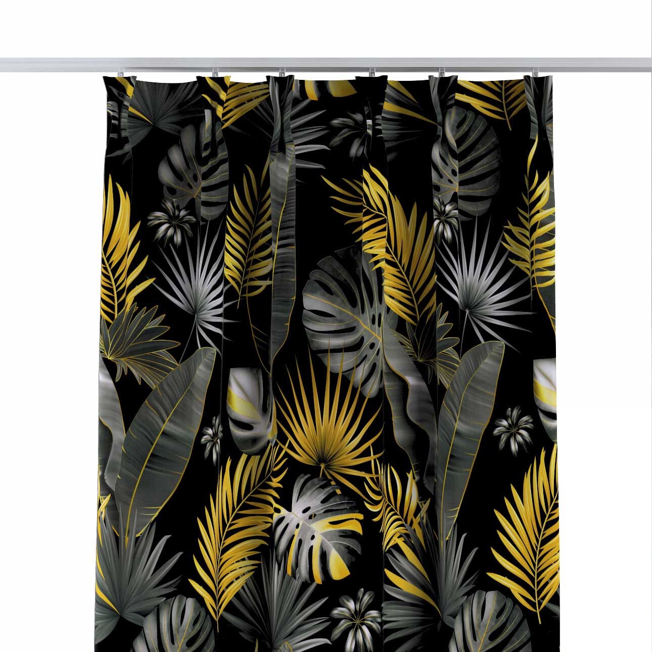 Záves so systémom FLEX (dvojité spony flex), grå-guld blade på en sort baggrund, Velvet, 185-81