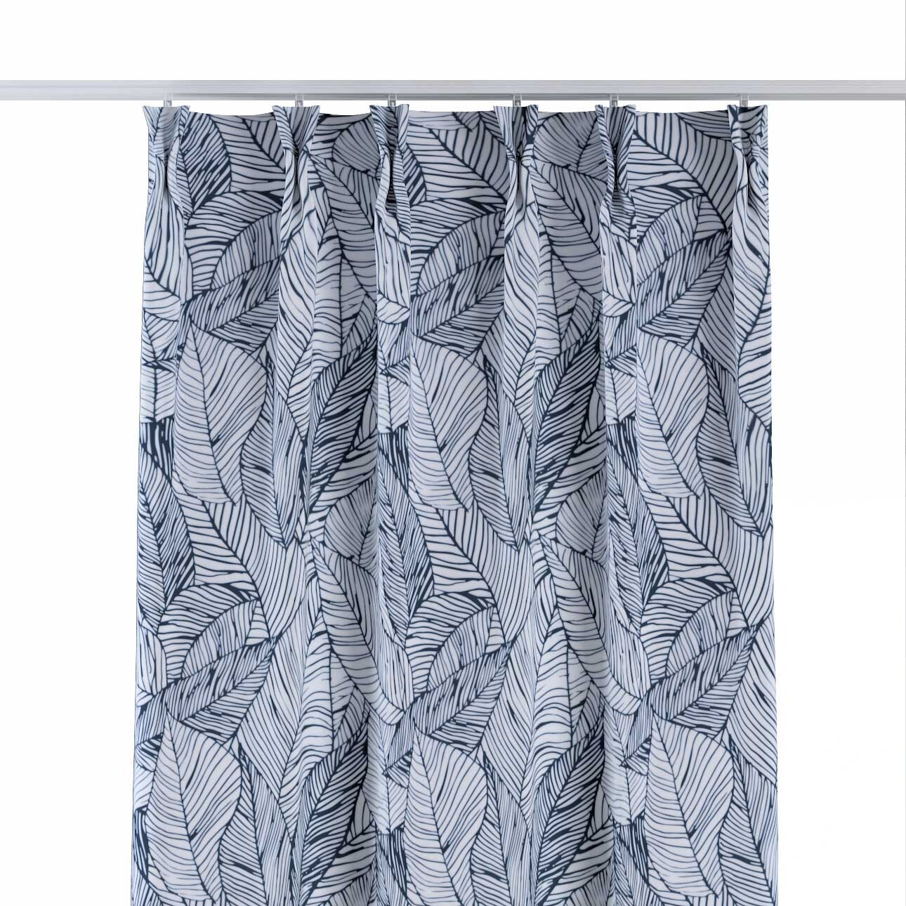 Záves so systémom FLEX (dvojité spony flex), Hvid med mørkeblå, Velvet, 704-34
