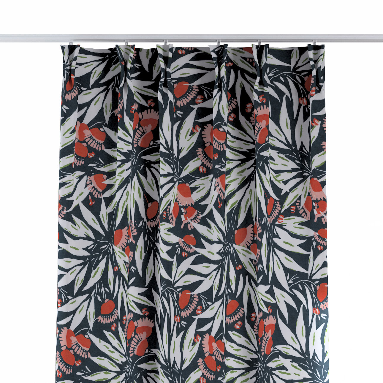 Záves so systémom FLEX (dvojité spony flex), kvety na tmavomodrom pozadí, Eden, 144-20